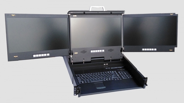 - Triple 17.3 inch wide screen LCD Display Console Drawer